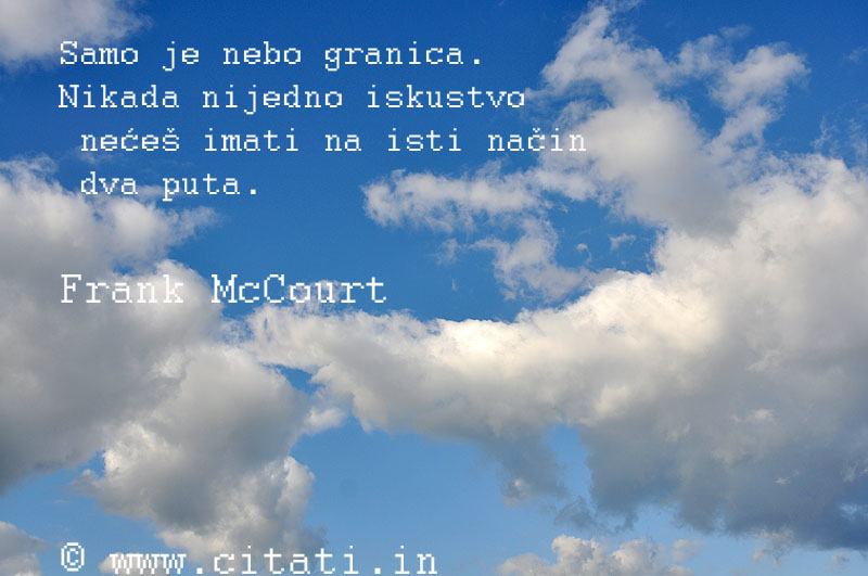 Samo je nebo granica. Nikada nijedno iskustvo nećeš imati na isti način dva puta.